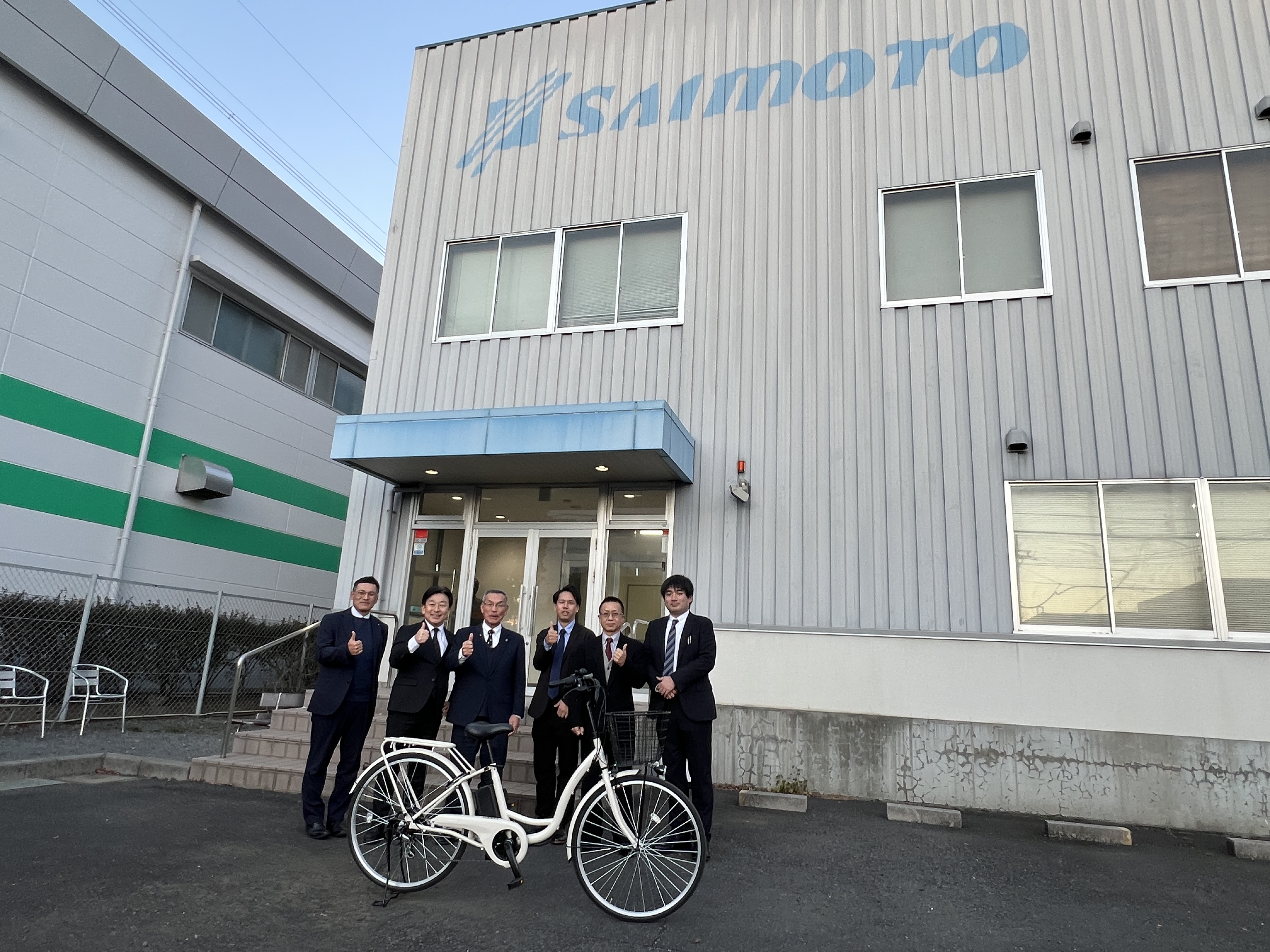 このたび幸手市長が当社関東支店へご来社され、当社の電動アシスト自転車にご試乗いただきました。
